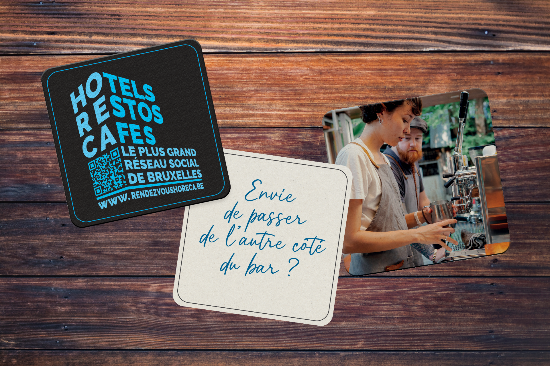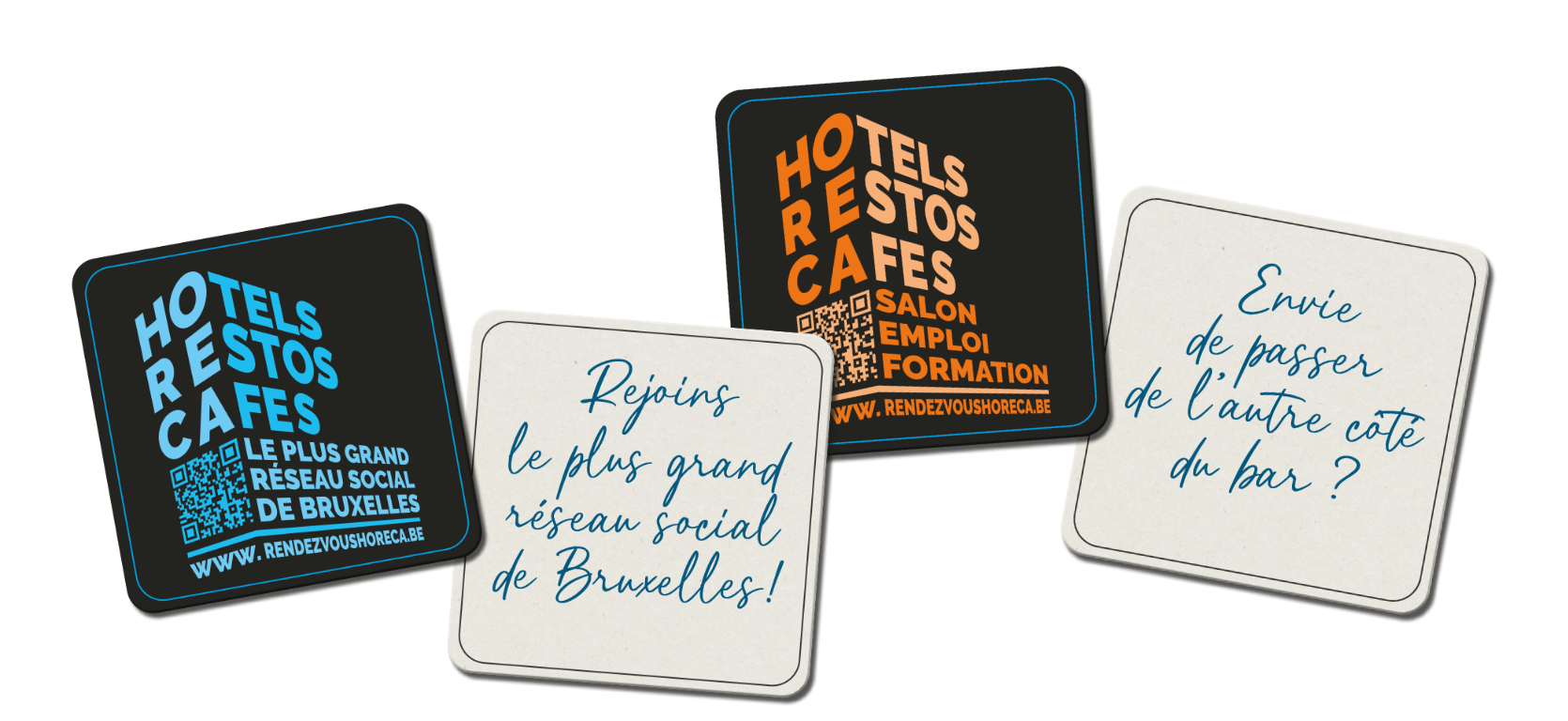 Séduction, qui met en avant le concept du plus grand réseau social de Bruxelles via des phrases sur des sous-bocks.
