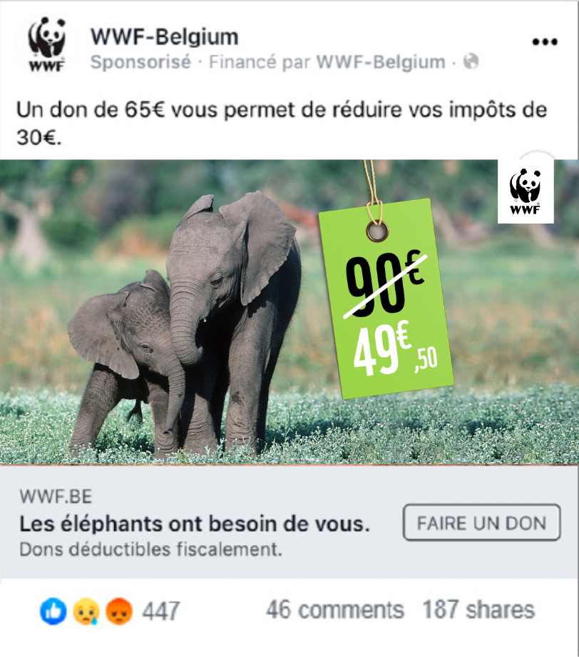 Campagne de collecte de dons du WWF pour les éléphants d’Afrique en voie d’extinction.
